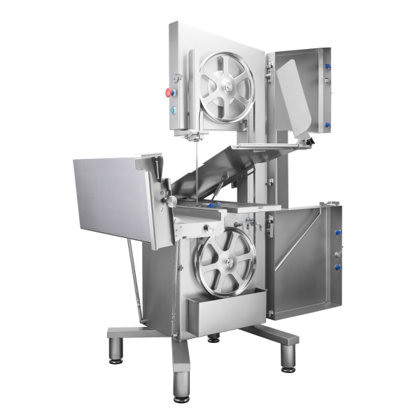 K380RS is the second largest bandsaw of the RS-Line. It is designed with a bigger spherically seated sliding table then K330RS model. This characteristic, combined with the higher pass of cutting, extended cutting stroke and the optional second speed, make this machine suitable for a precise portioning of fresh or frozen meat and fish.W3N1cHN5c3RpYy10YWJsZXMgaWQ9NTJd