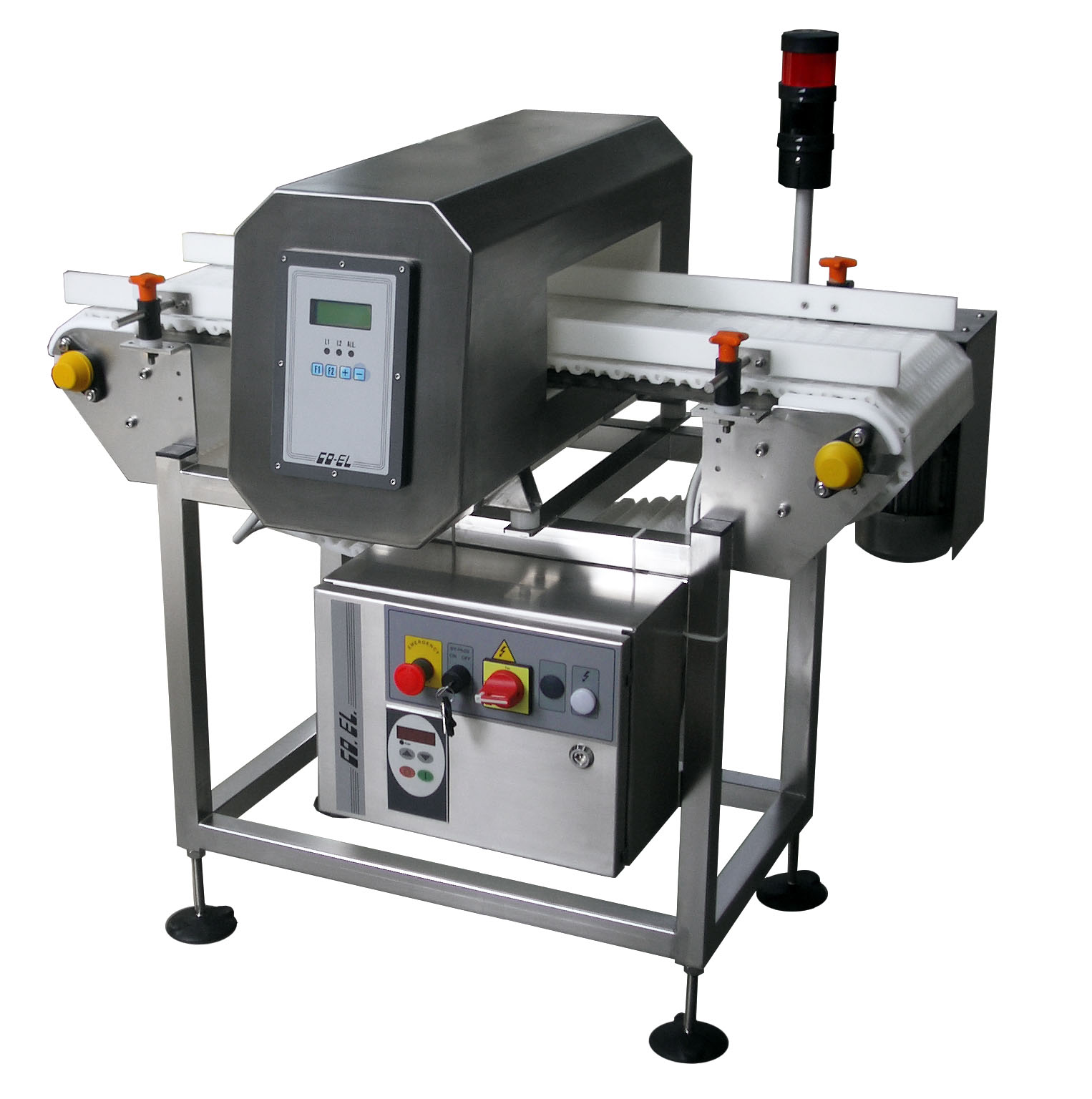 Detector metale se monteaza in mod normal pe o banda transportoare care transfera produsul prin pasajul detectorului de metale. Poate fi echipat cu multe accesorii, cum ar fi sisteme de respingere.